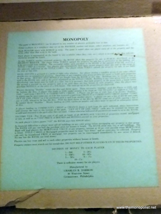 By this time, Parker Brothers was aware that Charles Darrow was not the actual inventor of Monopoly, and they were prepared to cut him out of the action if necessary. (This is abundantly made clear by their production in late 1935 of the game Fortune, which was essentially Monopoly, but without anything that Charles Darrow make any claim to having added to the game.)